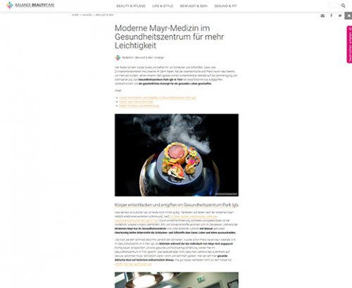 Ein gesunder Lebensstil ist die Voraussetzung für innere Ausgeglichenheit. Gesunde Ernährung, bewusste Bewegung und tiefgreifende Regeneration – vereint mit der traditionellen Frühdiagnostik nach F. X. Mayr und modernsten schulmedizinischen Methoden – geben Ihnen neue Impulse: im Gesundheitszentrum Park Igls in Tirol. Die Moderne Mayr-Medizin läuft keinen fragwürdigen, kurzlebigen Trends hinterher. Stets auf aktuellstem Stand der Wissenschaft, bietet das Gesundheitszentrum Park Igls in Tirol individuelle Konzepte für eine medizinisch begleitete Auszeit.